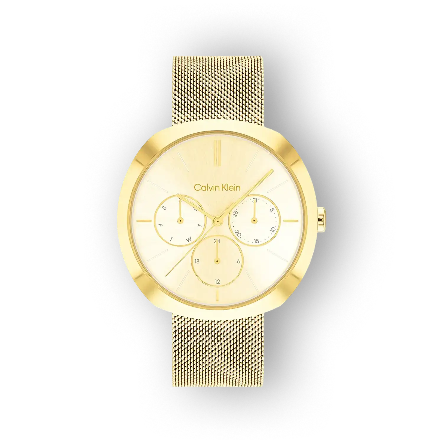 A Calvin Klein 25200339 letisztult arany megjelenésével és visszafogott, prémium érzetű kivitelezésével a modern női karórák közé sorolható. A modell kiegyensúlyozott, 38 mm-es tokátmérőjének köszönhetően egyszerre hordható mindennapi viseletre és ünnepi alkalmakra. A karóra analóg kialakítása, egyszerű vonalai és arany számlapja stabil választás azoknak, akik a funkcionalitást és az esztétikát egyaránt értékelik.