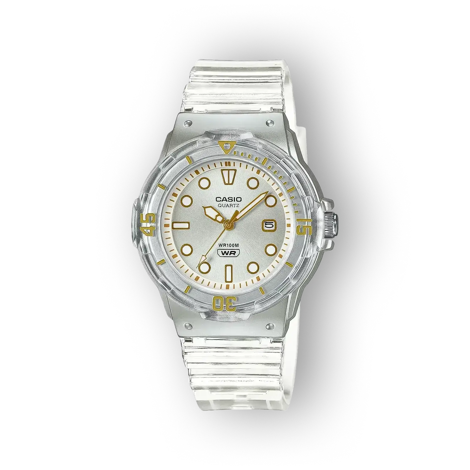 - Szíj anyaga: nem megadott (átlátszó kivitel) A szíj színe átlátszó, ami könnyed, semleges megjelenést kölcsönöz az órának, és illeszkedik különböző stílusokhoz. A pontos anyag nincs megadva, de a konstrukció a kényelmes, mindennapi viseletre optimalizált anyaghasználatot sugallja.