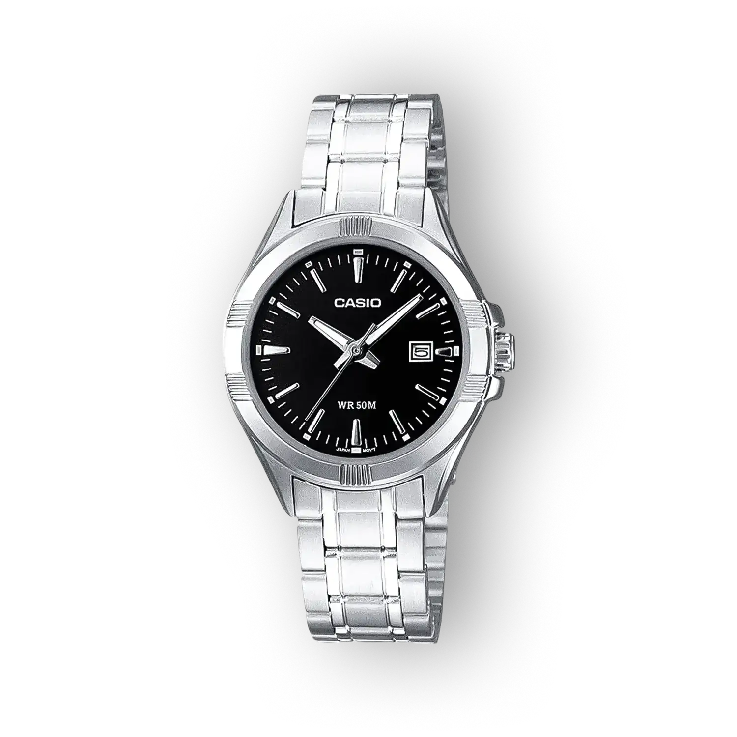 A Casio LTP-1308D-1AVDF időtlen, visszafogott megjelenésű női karóra, amely a mindennapi használatot és tartósságot helyezi előtérbe. Az analóg kijelzős modell letisztult fekete számlappal és ezüst színű rozsdamentes acél szíjjal rendelkezik, így könnyen illeszkedik formális és hétköznapi öltözékhez egyaránt. A Casio LTP-1308D-1AVDF kompakt tokátmérője miatt kényelmes viseletet biztosít kisebb csuklón is, miközben a 50 m-es vízállóság praktikus védelmet nyújt a mindennapi érintkezésből adódó nedvesség ellen.