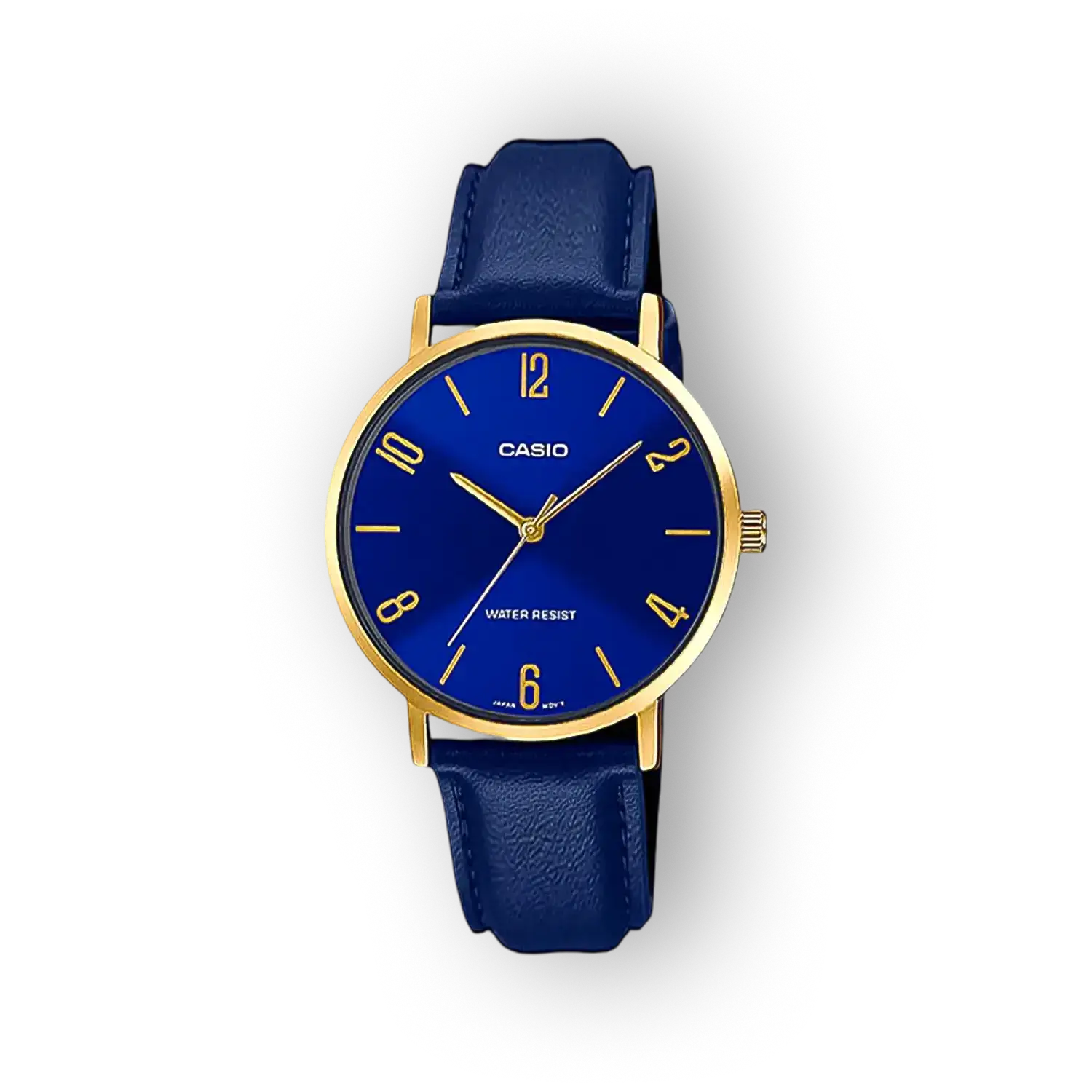 A Casio LTP-VT01GL-2BUDF egy letisztult, női szegmensre tervezett analóg karóra, amely ötvözi a klasszikus megjelenést a mai mindennapi használat elvárásaival. A modell quartz (elem) szerkezete és 24 hónapos garanciája megbízhatóságot sugall, míg a kék számlap és kék szíj diszkrét, mégis karakteres megjelenést ad a viselőjének. A Casio LTP-VT01GL-2BUDF alkalmas azoknak, akik preferálják az egyszerű, mégis rendezett dizájnt és a hétköznapi funkcionalitást.