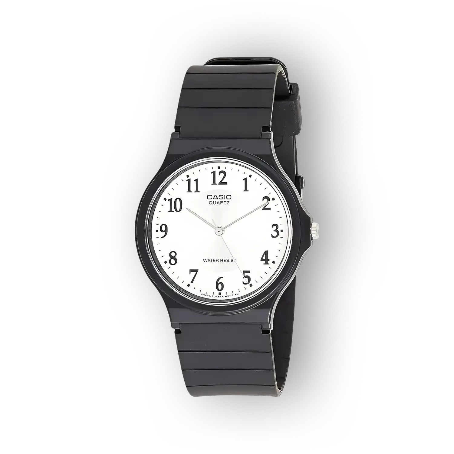 A Casio MQ-24-7B3LLEF egy letisztult, analóg quartz szerkezetű karóra, amely a mindennapi viselet igényére fókuszál. Minimalista dizájnja és ezüst számlapja könnyen olvasható megjelenést biztosít, miközben a fekete szíj klasszikus kontrasztot ad. Ez a modell praktikus, vízálló jelleggel és tartós anyaghasználattal kínál megbízható időmérést.