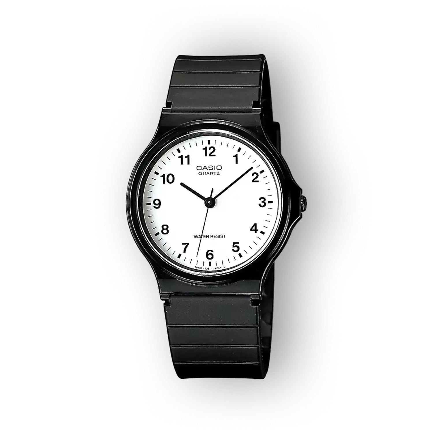 A Casio MQ-24-7BLLGF egy letisztult, könnyű szerkezetű karóra, amely a hétköznapi viselet egyszerűséget és megbízhatóságot kívánja ötvözni. A minimalista, fehér számlap és a fekete szíj kombinációja klasszikus megjelenést ad, miközben a quartz szerkezet stabil időmérést biztosít. Ez a modell jó választás azoknak, akik funkciót és visszafogott dizájnt keresnek túlzott díszítések nélkül.