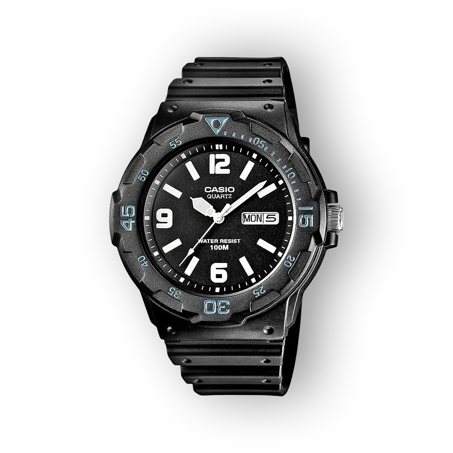 A Casio MRW-200H-1B2VEF egy letisztult, funkcionális analóg karóra, amely a mindennapi viselet és szabadtéri használat igényeit egyensúlyban tartja. A modell praktikus kialakítása és megbízható quartz szerkezete miatt népszerű választás azok számára, akik tartós, mégis könnyű időmérőt keresnek. A fekete számlap és szíj visszafogott, professzionális megjelenést ad, miközben a 100 m-es vízállóság sok helyzetben biztosít védelmet.