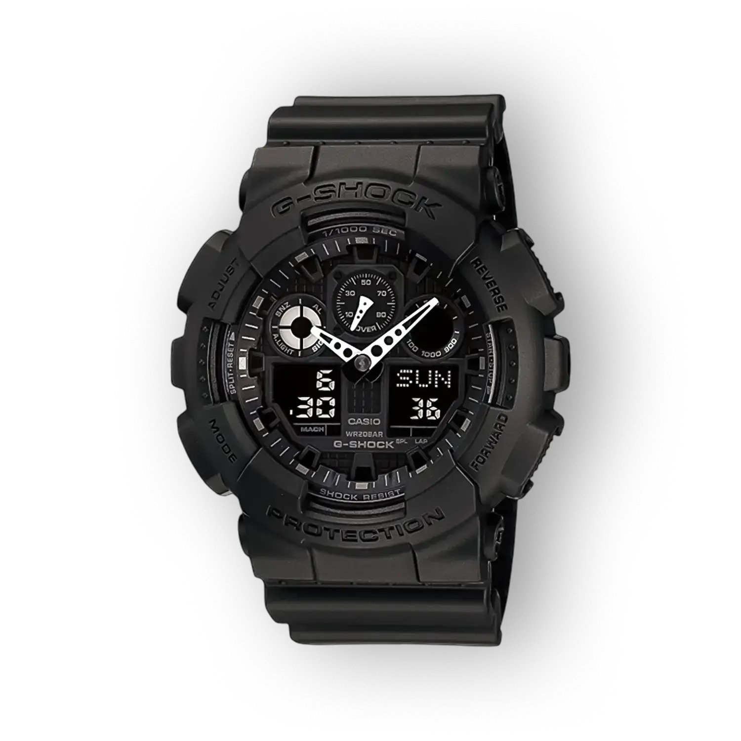 A Casio GA-100-1A1ER egy funkcionális és masszív quartz szerkezetű karóra, amely a G-Shock család jellegzetes strapabíróságát kínálja. A dizájnja fekete számlappal és fekete szíjjal egyszerre modern és visszafogott, így mindennapi viseletben és aktív környezetben egyaránt megállja a helyét. Ez a modell megfelel azoknak az elvárásoknak, akik vízálló és ütésálló megoldást keresnek analóg-digitális kombinációval.