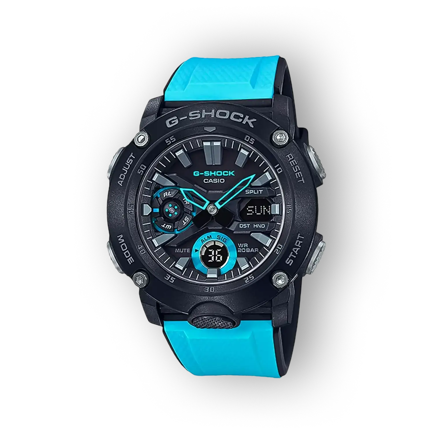 A Casio GA-2000-1A2ER egy robusztus, mégis letisztult dizájnú karóra, amely a G-Shock sorozat strapabíróságát ötvözi a mindennapi viselethez szükséges funkcionalitással. A modell analóg-digitális megjelenése és 200 méteres vízállósága miatt alkalmas kültéri tevékenységekhez és aktív életmódhoz, miközben a fekete számlap és kék szíj elegáns, mégsem hivalkodó megjelenést biztosít.