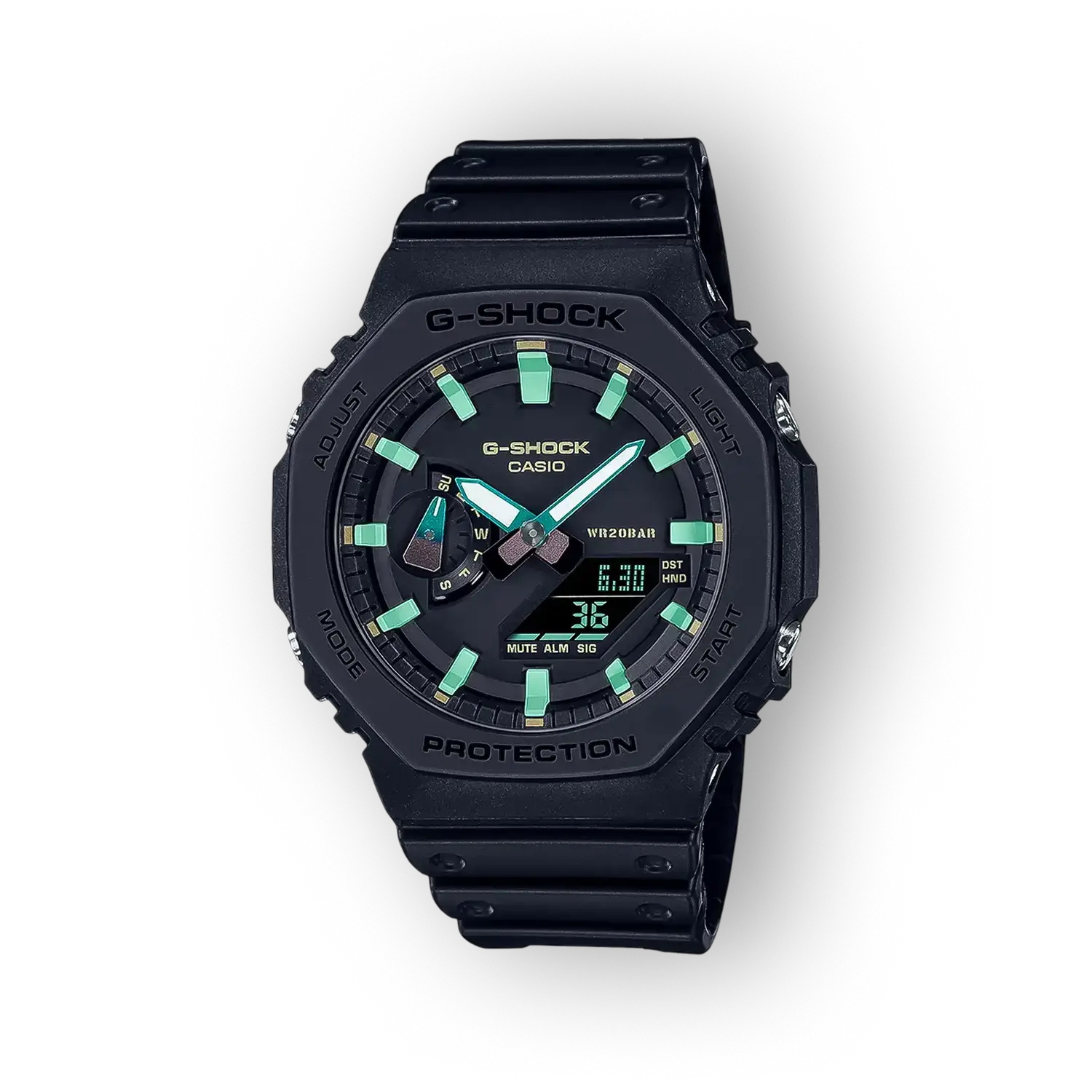 - Tok anyaga: Gyanta A gyanta tok könnyű és ütésálló, ami hozzájárul a G-Shock jellegzetes tartósságához. A könnyű anyag viselési kényelmet kínál anélkül, hogy csökkentené a védelmi szintet.
