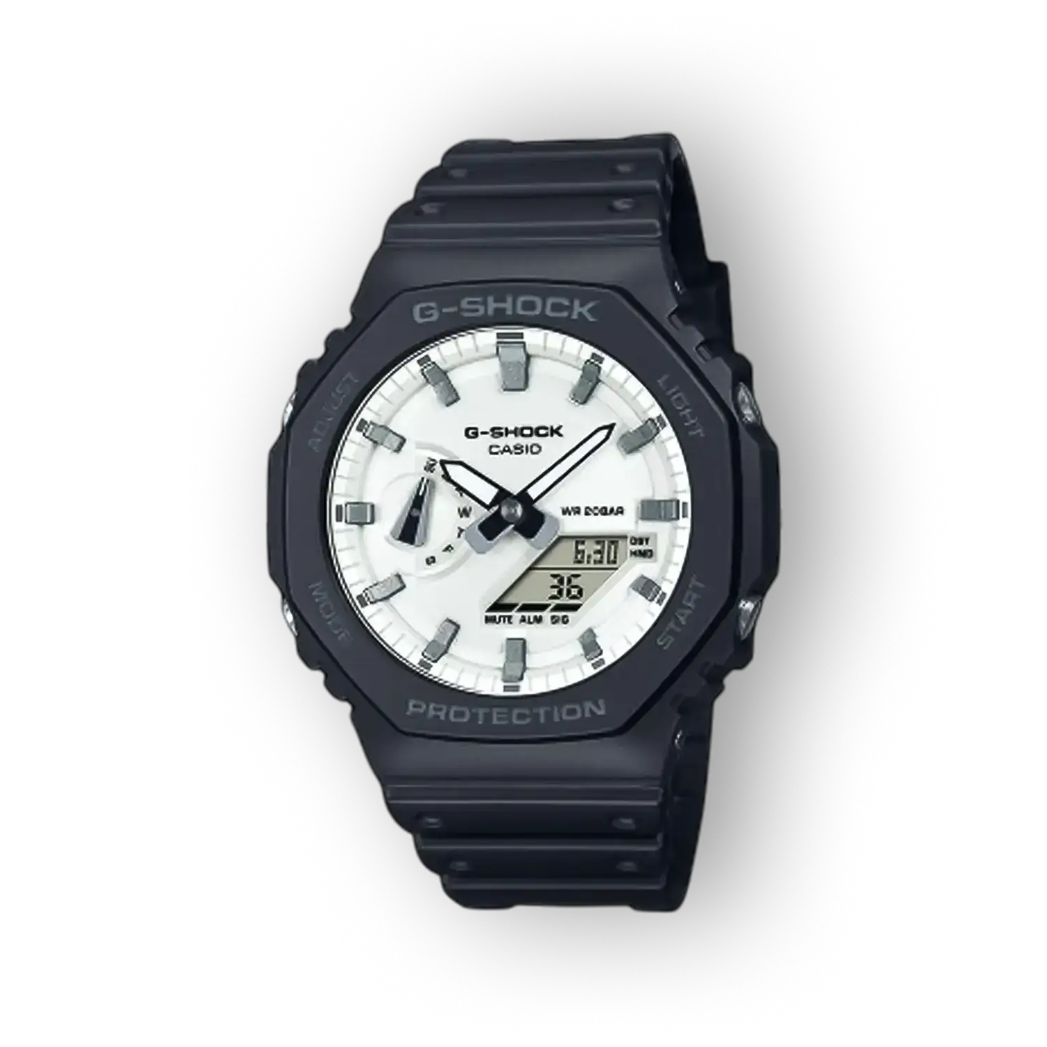A Casio GA-2100WD-1AER egy letisztult, masszív kivitelű karóra, amelyet mindennapi használatra és aktív életmódhoz terveztek. A modell ötvözi a kvarc szerkezet precizitását és a modern anyaghasználatot, így praktikus választás azoknak, akik vízálló, könnyen olvasható analóg kijelzőt keresnek. A tok karbon anyaga és a 200 m-es vízállóság együttesen megbízhatóságot és tartósságot biztosít a használó számára.