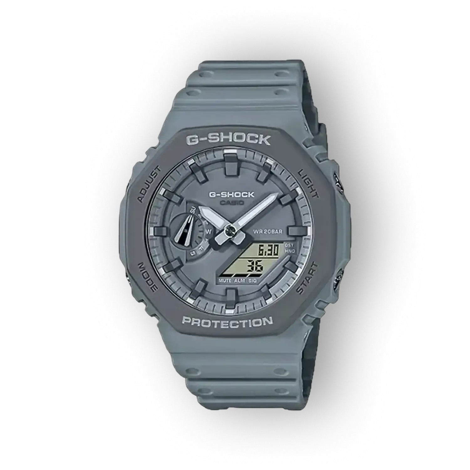 A Casio GA-2110ET-8AER egy masszív, mégis letisztult megjelenésű karóra, amely a G-Shock sorozat tartósságát és a mindennapi viselethez szükséges funkcionalitást ötvözi. A szürke tónusú számlap és szíj visszafogott, prémium érzetet ad, miközben a 200 méteres vízállóság miatt ez a modell alkalmas szabadtéri és vízi tevékenységekhez is. A szerkezet quartz (elem) típusa stabil időmérést biztosít, míg a 24 hónapos garancia a megbízhatóság biztonságát nyújtja.