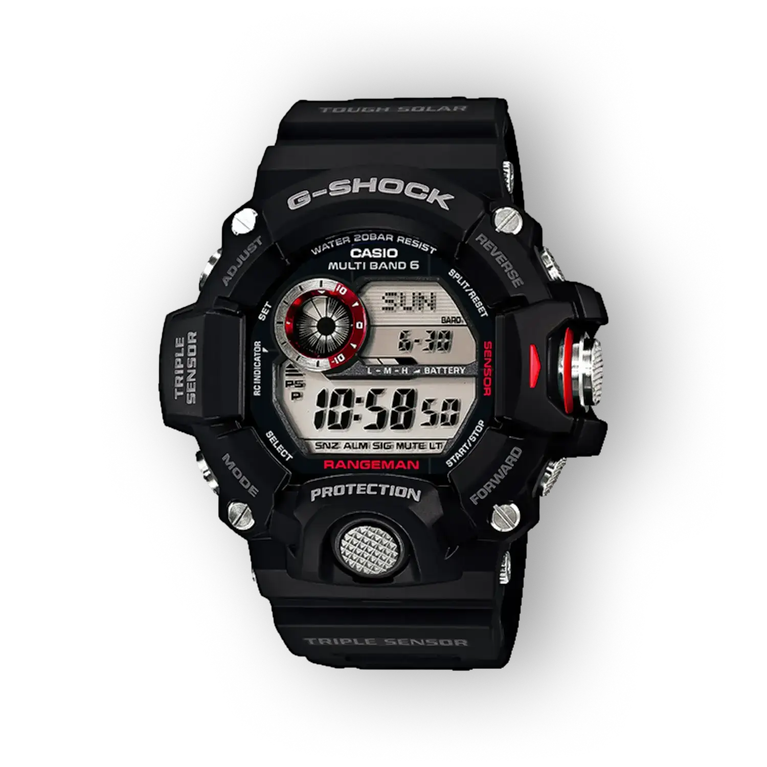 A Casio GW-9400-1ER olyan terepi és mindennapi használatra tervezett karóra, amely a strapabíró kivitel és a korszerű funkciók kompromisszummentes kombinációját kínálja. A modell megbízhatósága, 200 m-es vízállósága és napenergiával töltődő szerkezete miatt a karóra alkalmas aktív életmódhoz, ugyanakkor áttekinthető kijelzője és robusztus megjelenése professzionális benyomást kelt.
