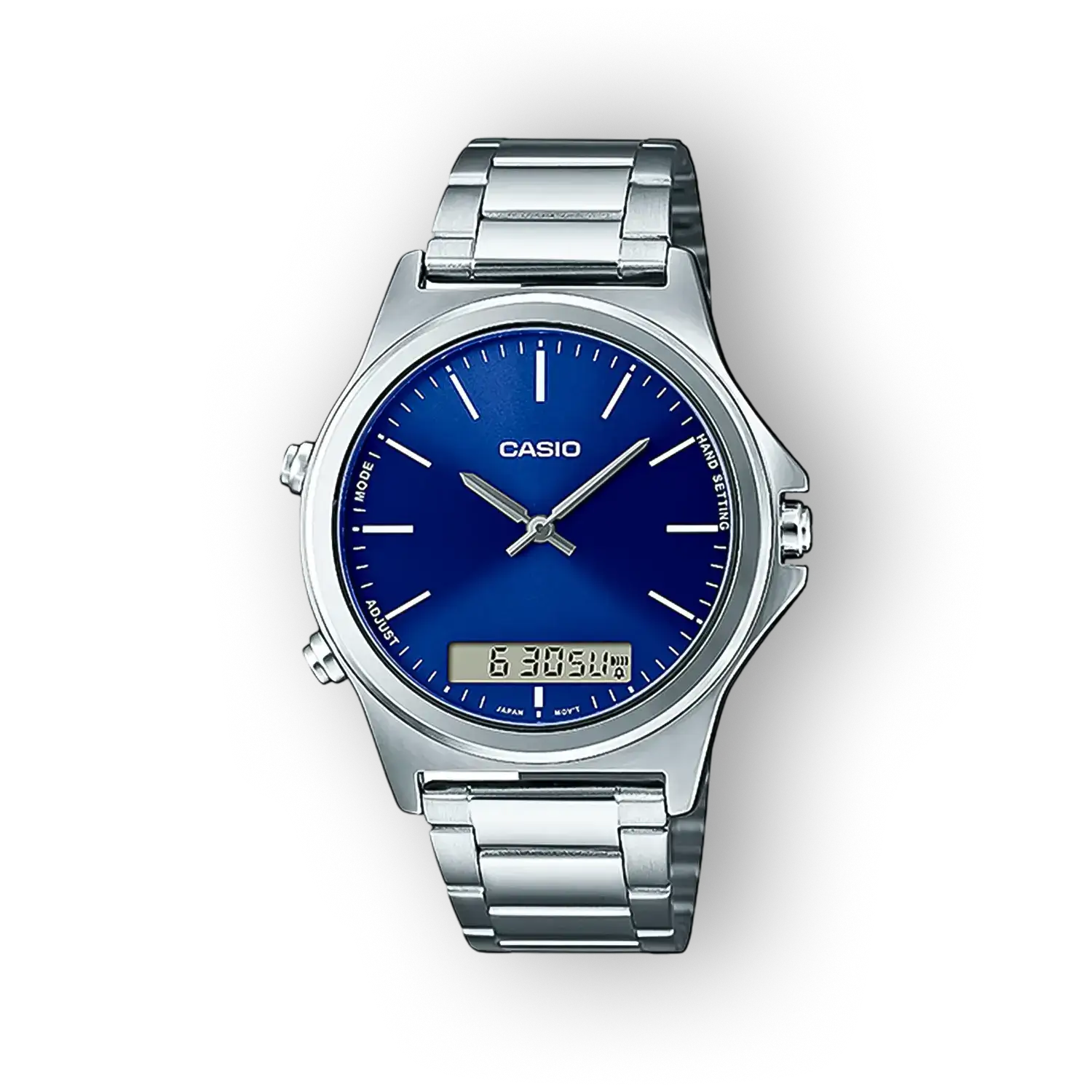A Casio MTP-VC01D-2EUDF egy visszafogott, mégis kiegyensúlyozott formanyelvű analóg karóra, amely a mindennapi viselet és az alkalmi megjelenés között helyezkedik el. A modell egyszerre kínál letisztult dizájnt és megbízható kvarc szerkezetet, így azok számára lehet ideális, akik átgondolt, tartós megoldást keresnek. A Casio MTP-VC01D-2EUDF kék számlapja és rozsdamentes acél kivitele klasszikus karaktert ad a darabnak anélkül, hogy túlzó díszítést alkalmazna.