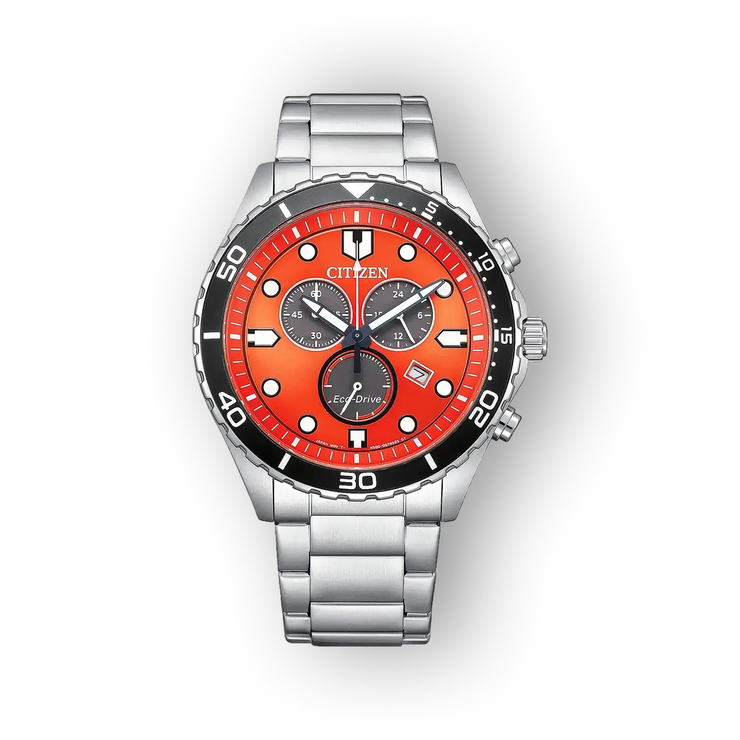 A Citizen AT2560-84X egy precízen kivitelezett, napi használatra tervezett karóra, amely a Citizen Eco-Drive technológiájával működik. A 43 mm-es tokátmérő és a 100 m-es vízállóság olyan kombinációt ad, amely elegendő jelen a hétköznapi és aktív környezetben egyaránt. A narancssárga számlap és az ezüst szíj színkombinációja karakteres, mégis diszkrét megjelenést biztosít az órának.