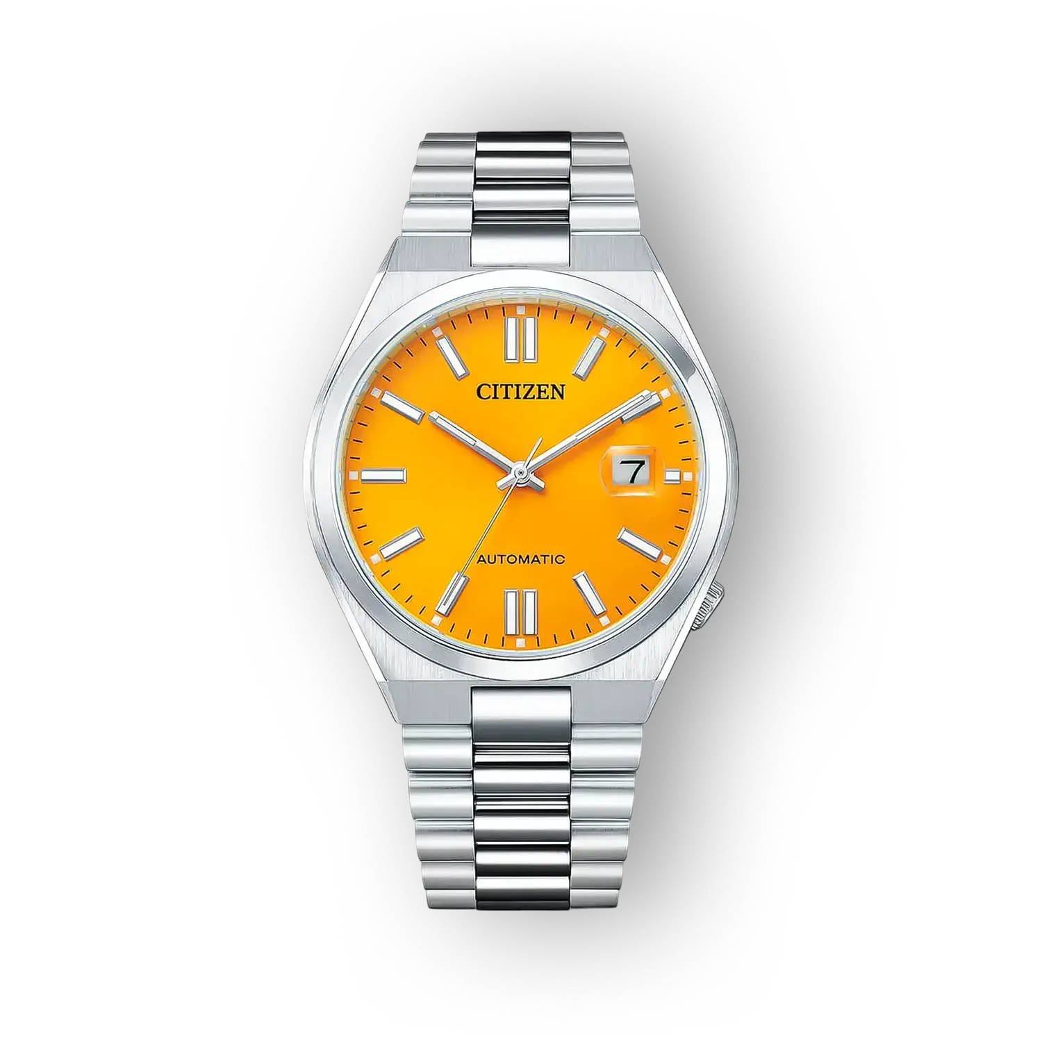 A Citizen NJ0150-81Z egy visszafogottan karakteres automata szerkezetű karóra, amely a mindennapi viselet és az időtálló kialakítás igényét egyaránt kielégíti. A rozsdamentes acél ház és az élénk narancssárga számlap kombinációja prémium, mégis használható megjelenést ad, miközben a 50 méteres vízállóság kiszámítható védelmet nyújt a mindennapi helyzetekre.