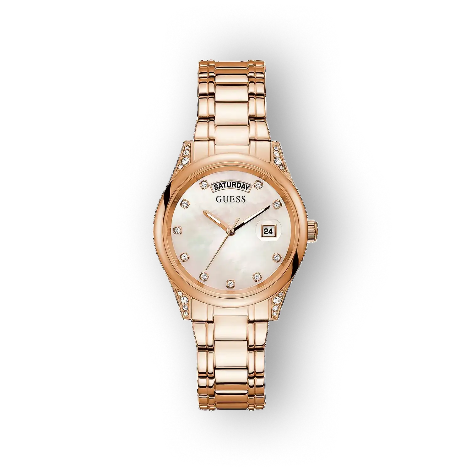 A Guess Aura GW0047L2 egy visszafogottan elegáns, mindennapi viseletre tervezett női karóra, amely az analóg időmérés klasszikus értékeit és a modern kivitelezést kombinálja. A letisztult formanyelv és a gyöngyház számlap finom megjelenést kölcsönöz a darabnak, miközben a Quartz szerkezet megbízható működést biztosít. A modellről alkotott vélemények gyakran emelik ki a minőségi anyaghasználat és az esztétika arányát, ami miatt a Guess GW0047L2 tartós választás lehet.