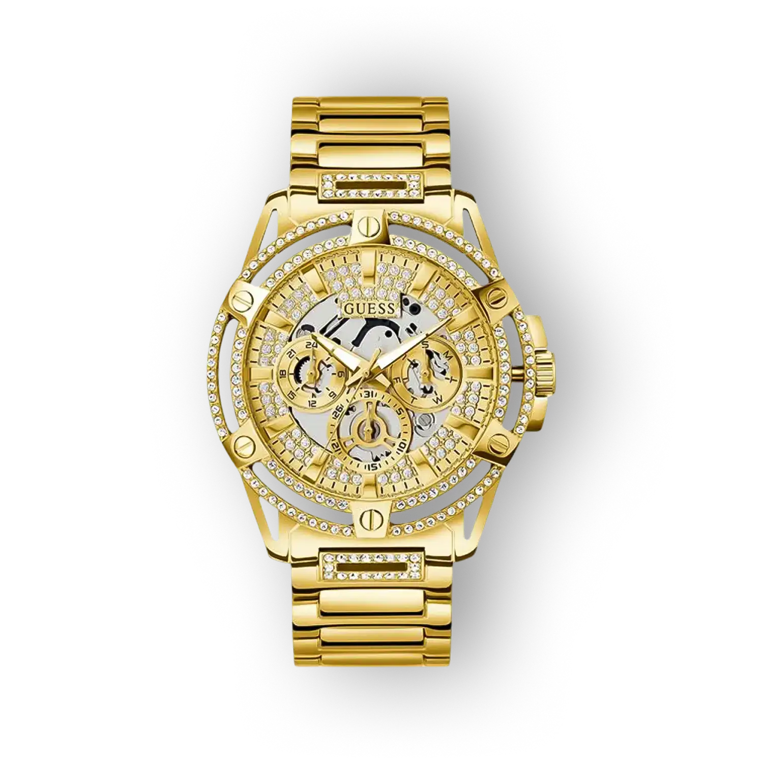 A Guess King GW0497G2 egy letisztult megjelenésű, analóg karóra, amely a kortalan dizájnt és a hétköznapi funkcionalitást kombinálja. A 49 mm-es tokátmérő és az arany tónusú számlap jellegzetes, mégis visszafogott jelenlétet kölcsönöz viselőjének. A mindennapi viseletre tervezett darab quartz szerkezettel működik, ami megbízhatóságot és egyszerű használatot jelent az órahasználatban.