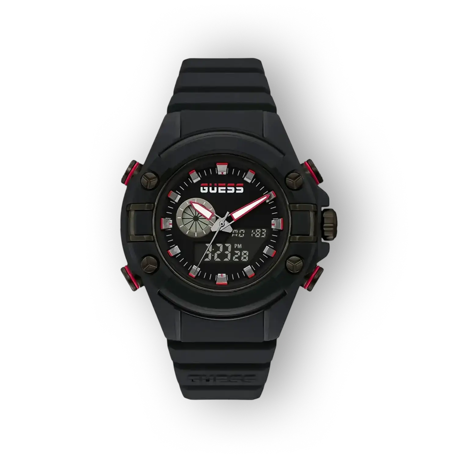 A Guess Mens Sport GW0269G3 egy markáns, sportos megjelenésű férfi karóra, amely a mindennapi használatra tervezett funkcionalitást és egyszerű, mégis határozott dizájnt ötvözi. A modell letisztult fekete számlapja és karakteres tokátmérője miatt az óra könnyen felismerhető a kategóriájában. A Guess GW0269G3 ideális azoknak, akik analóg megjelenést, megbízható kvarc szerkezetet és hétköznapi vízállóságot keresnek.