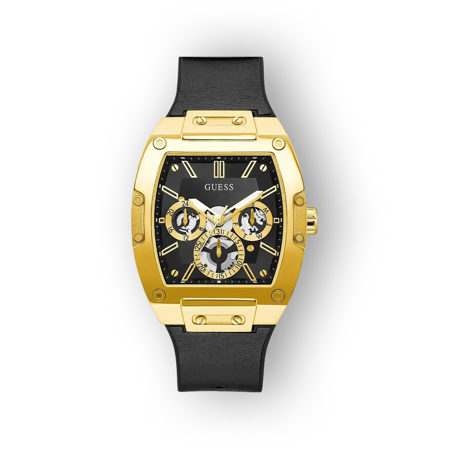 A Guess Phoenix GW0202G1 egy olyan időtálló, prémium hatású karóra, amelyet a mindennapi használatra terveztek. A letisztult fekete számlap és a masszív, PVD bevonatú acél tok elegáns megjelenést kölcsönöz, miközben a quartz szerkezet biztosítja a megbízható járást. A részletes kialakítás a funkcionalitást tartja szem előtt, így ez a modell könnyen illeszkedik üzleti és laza öltözethez egyaránt.