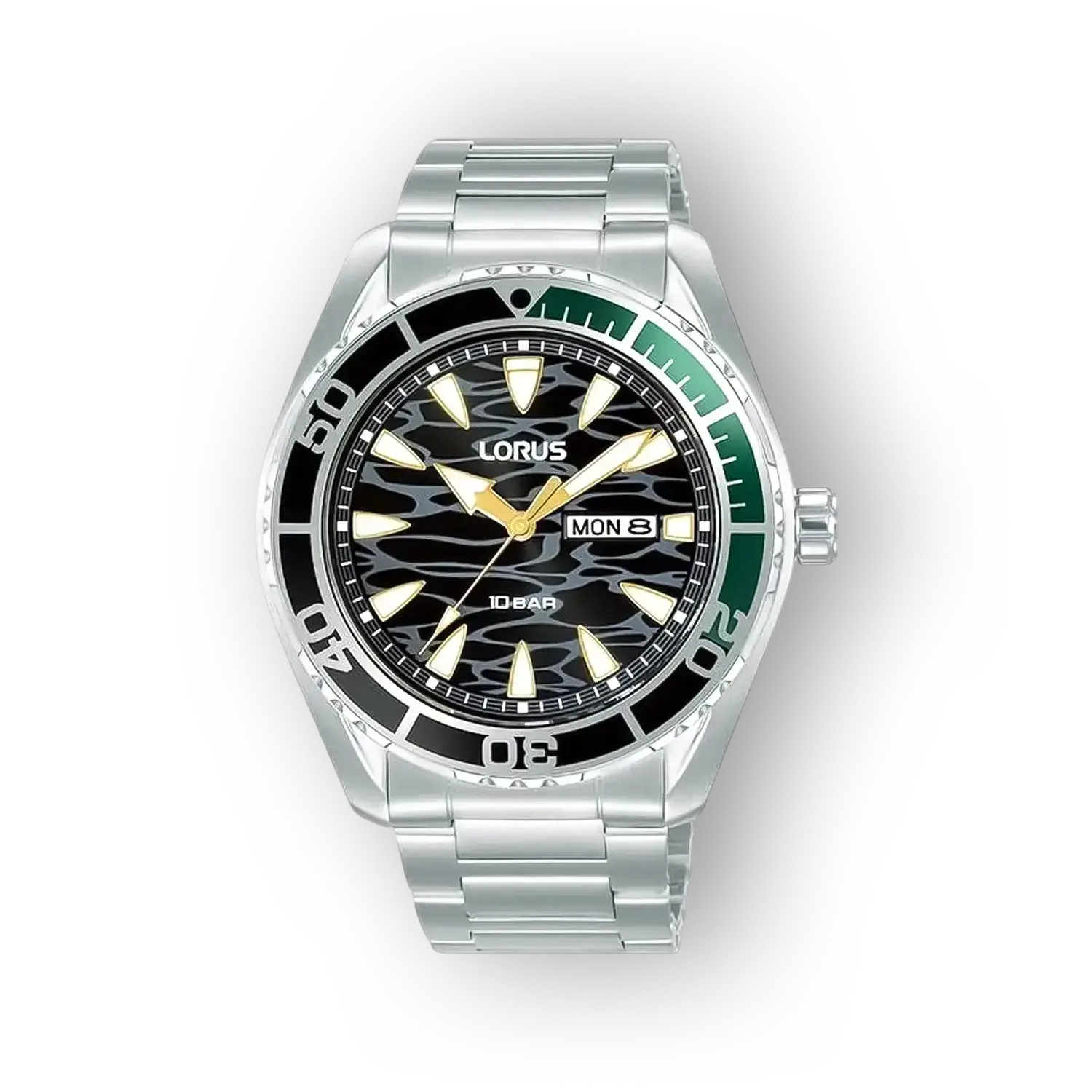 A Lorus RH385AX9 egy letisztult, mégis tartós kialakítású karóra, amely a mindennapi viselet és a hétköznapi igények kielégítésére készült. A modell visszafogott, professzionális megjelenést kínál fekete számlapjával és ezüst színű szíjával, miközben a 41 mm-es tokátmérő révén jól olvasható, de nem dominálja a csuklót. Ez a Lorus RH385AX9 alternatívát jelent azoknak, akik vízálló, analóg megoldást keresnek megbízható szerkezettel.