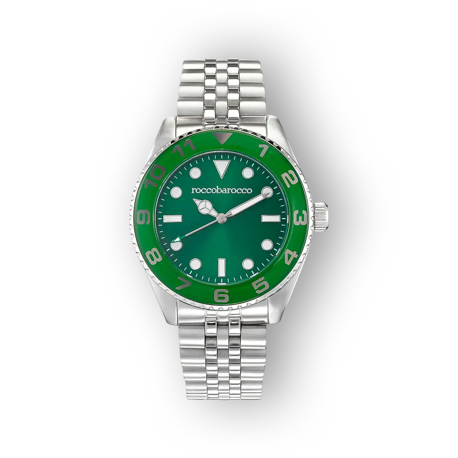 A Roccobarocco RB.4886M-11M egy letisztult, prémium érzetű analóg karóra, amely a mindennapi viselet és az alkalmi megjelenés közötti egyensúlyt tartja. A modell kiegyensúlyozott formavilága és zöld számlapja visszafogott eleganciát sugároz, miközben a rozsdamentes acél kivitel tartósságot biztosít. Ez a karóra azoknak készült, akik értékelik a megbízható szerkezetet és a gondos kidolgozást, de nem szeretnének feltűnő, túldíszített darabot viselni.