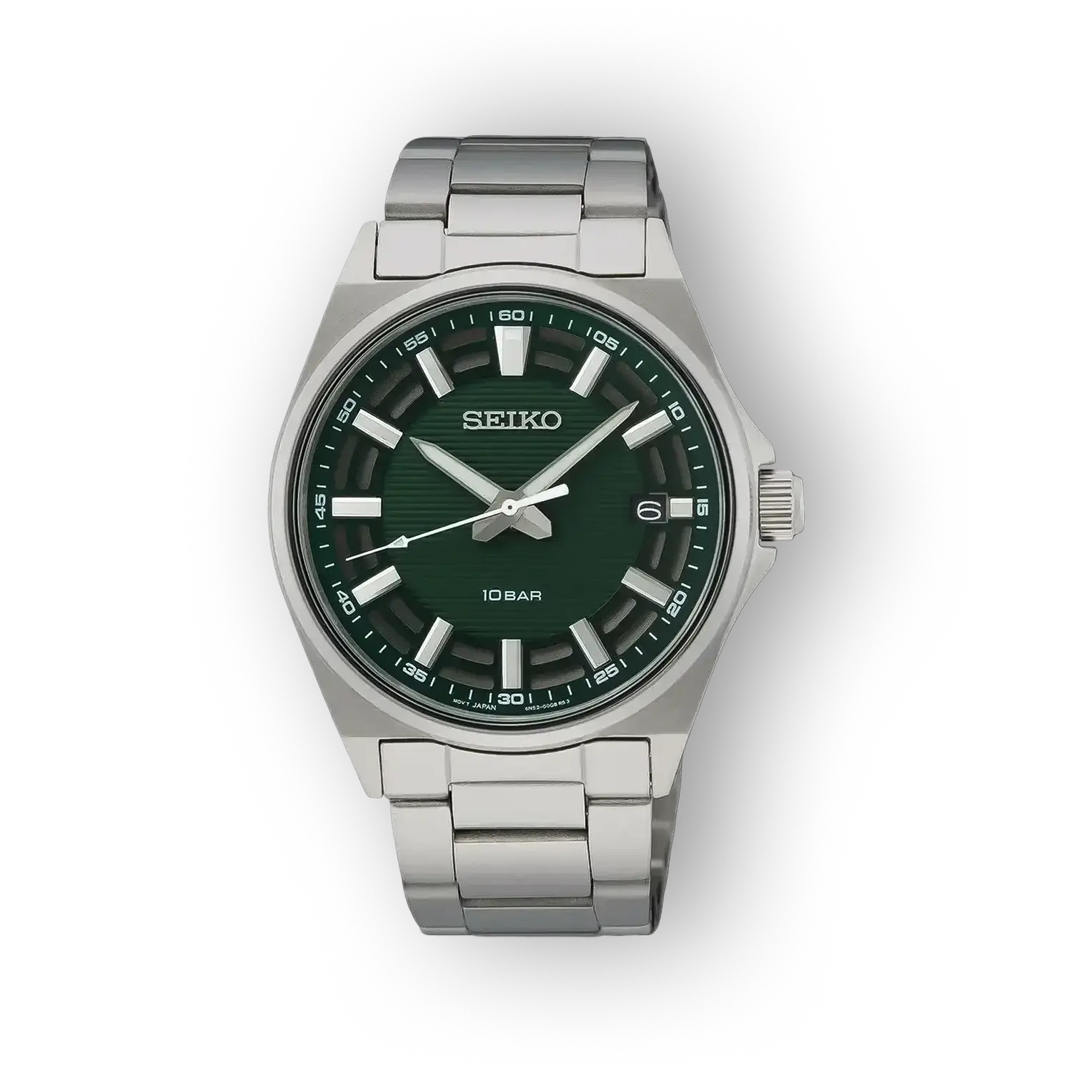 A Seiko SUR503P1 a márkára jellemző precizitást és a mindennapi használathoz illeszkedő funkcionalitást egyesíti. Ez az analóg, vízálló karóra visszafogott megjelenésével és zöld számlapjával olyan alternatíva, amely egyszerre alkalmas hétköznapi viseletre és informális üzleti környezetbe.