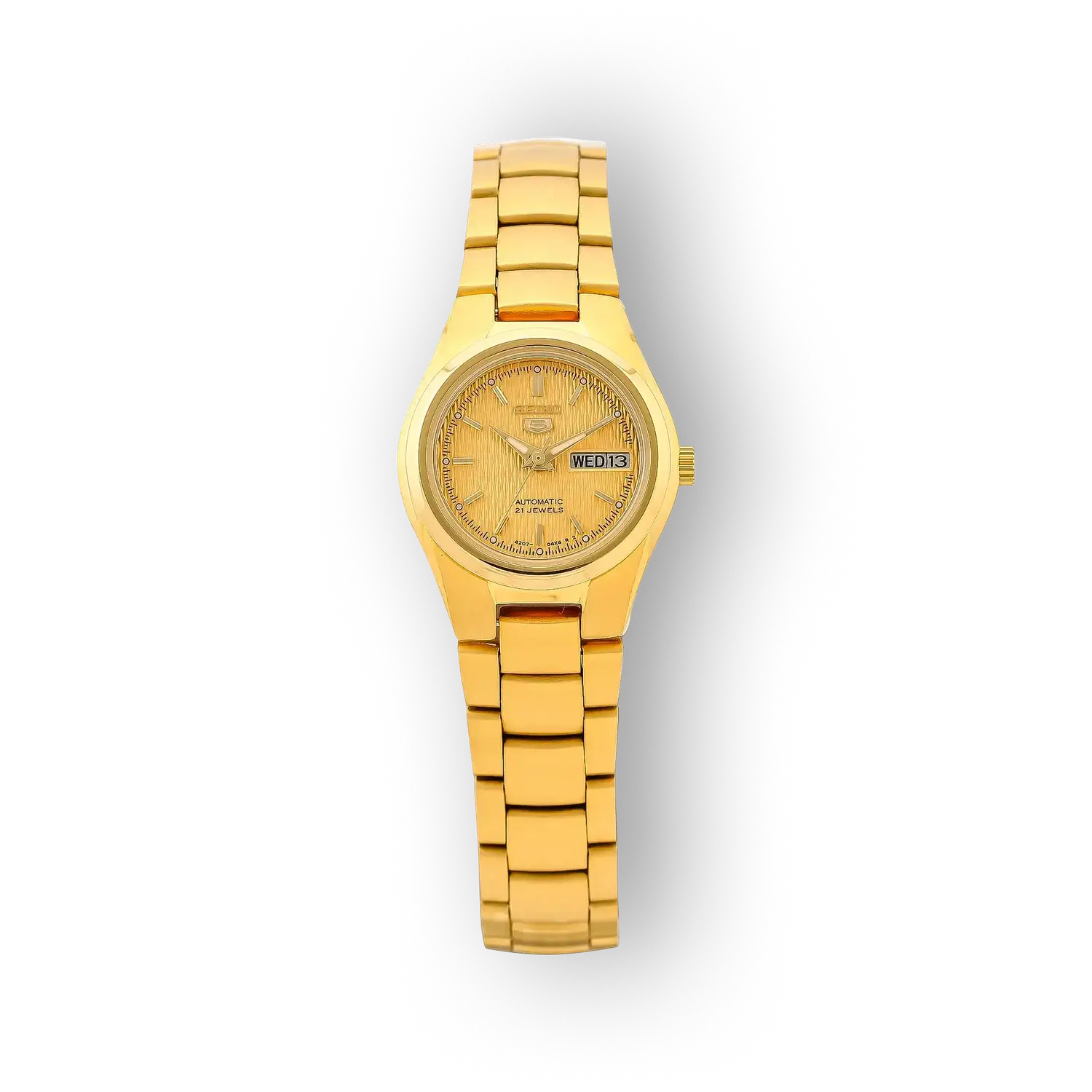 - Szíj anyaga: A szíj anyaga nincs részletezve; a modell arany színből kiindulva fémcsat vagy fémhatású kivitel valószínűsíthető, ami egységes, letisztult megjelenést ad. A fém szíj tartóssága és egyszerű tisztíthatósága előnyt jelent a gyakori viseletnél.