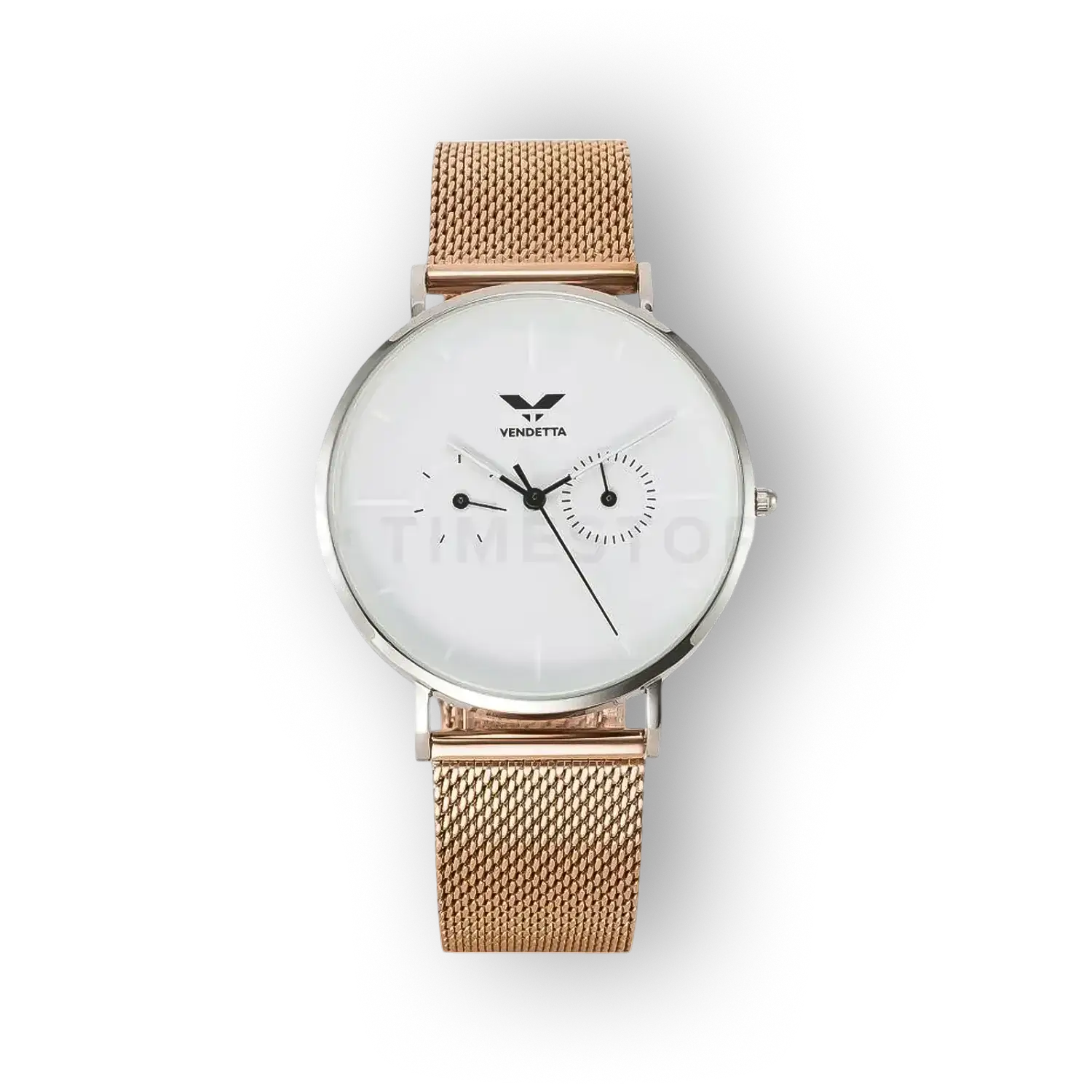 A Vendetta VE1076 egy letisztult és funkcionális karóra, amely a klasszikus analóg megjelenést modern kivitelezéssel ötvözi. A precíz Quartz szerkezet és a rozsdamentes acélból készült tok megbízhatóságot sugároz, míg a fehér számlap és a vörös arany árnyalatok elegáns kontrasztot teremtenek. Ez a modell olyan felhasználóknak készült, akik mindennapi viseletre keresnek tartós, mégis kifinomult megoldást.