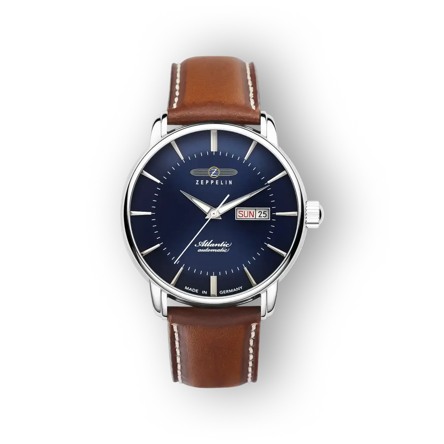 A Zeppelin 8466-3 egy kifinomult, mégis visszafogott megjelenésű analóg karóra, amely a hagyományos német órakészítési esztétikát ötvözi a mindennapi használatra tervezett funkciókkal. A kék számlap és a barna szíj elegáns, de nem hivalkodó kombinációja üzleti és hétköznapi viselethez egyaránt illik, míg a 40 mm-es tokátmérő kiegyensúlyozott arányérzetet ad a csuklón. A készülék automatikus szerkezettel dolgozik, így a használó a mechanika klasszikus élményét kapja modern megbízhatósággal.