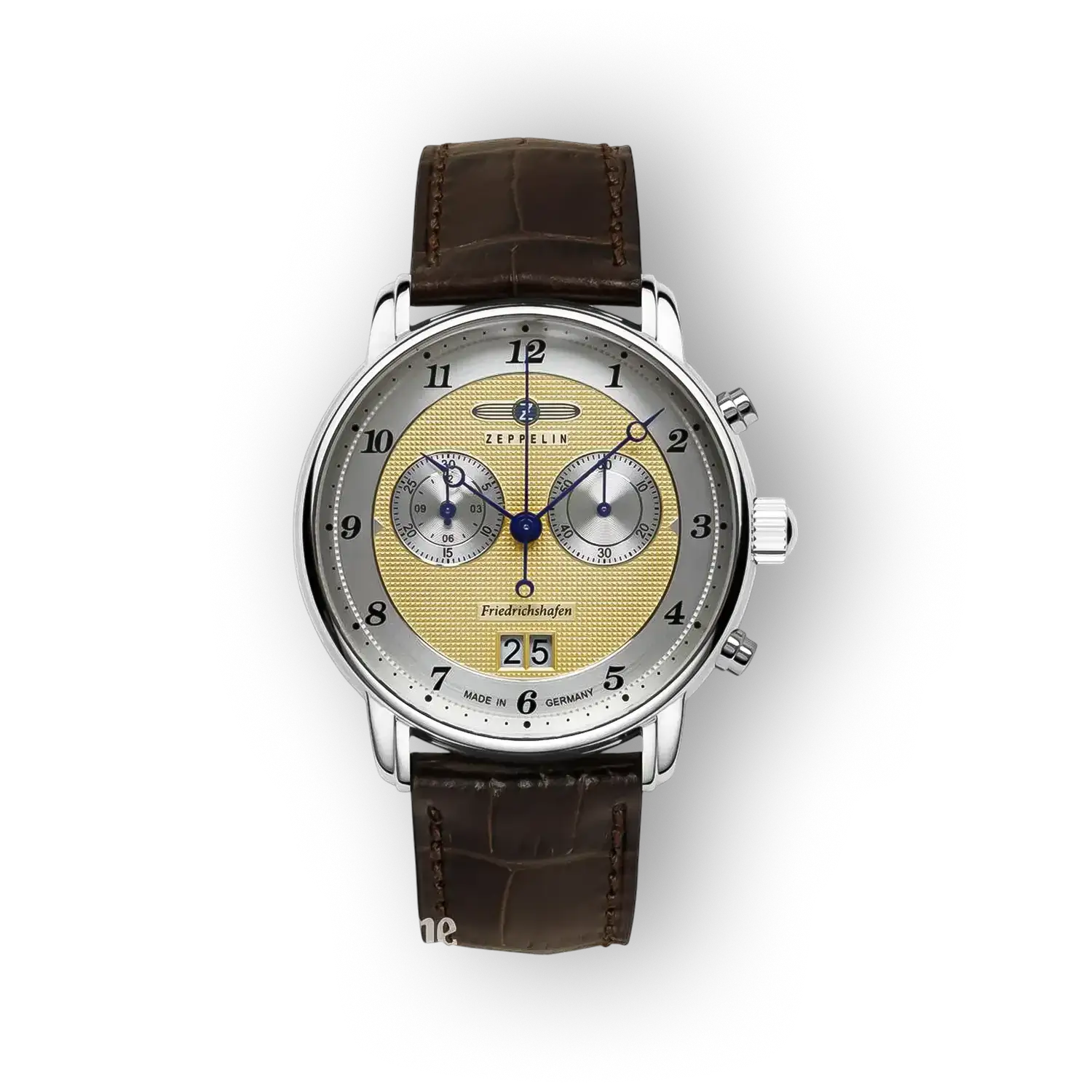 A Zeppelin 8584-5 egy letisztult, analóg kialakítású karóra, amely a mindennapi viselet és az elegáns megjelenés közötti egyensúlyt tartja. Az óra visszafogott részletei és sárga számlapja diszkrét prémium érzetet közvetítenek anélkül, hogy feltűnő lenne.